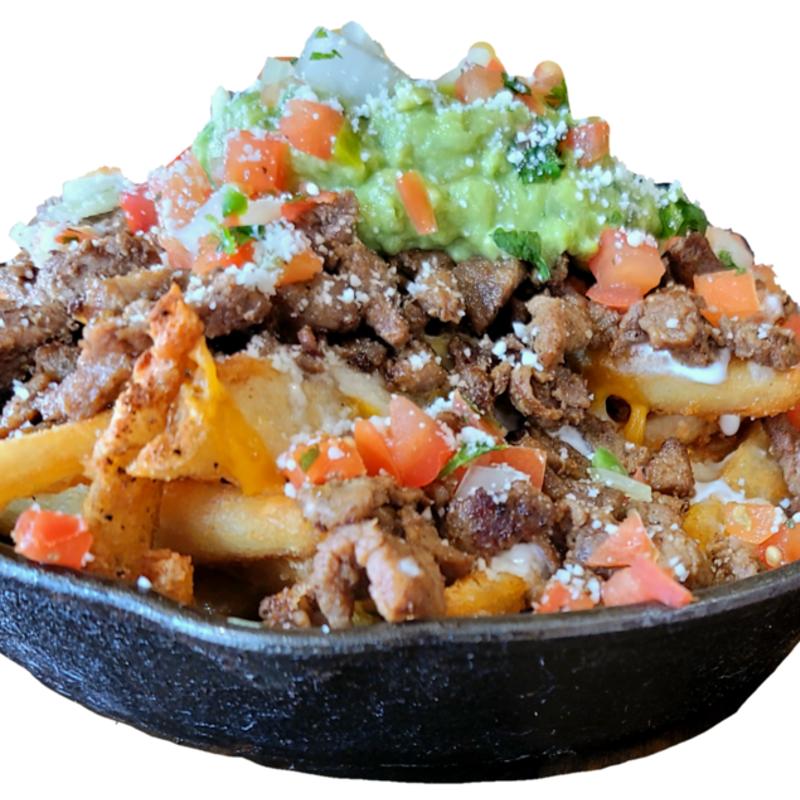 Tortilla chips topped Jalapeno cheese sauce, pico de gallo, fresh jalapeños and sour cream. / Add carnitas, chicken, or steak ( for an extra 5.99)