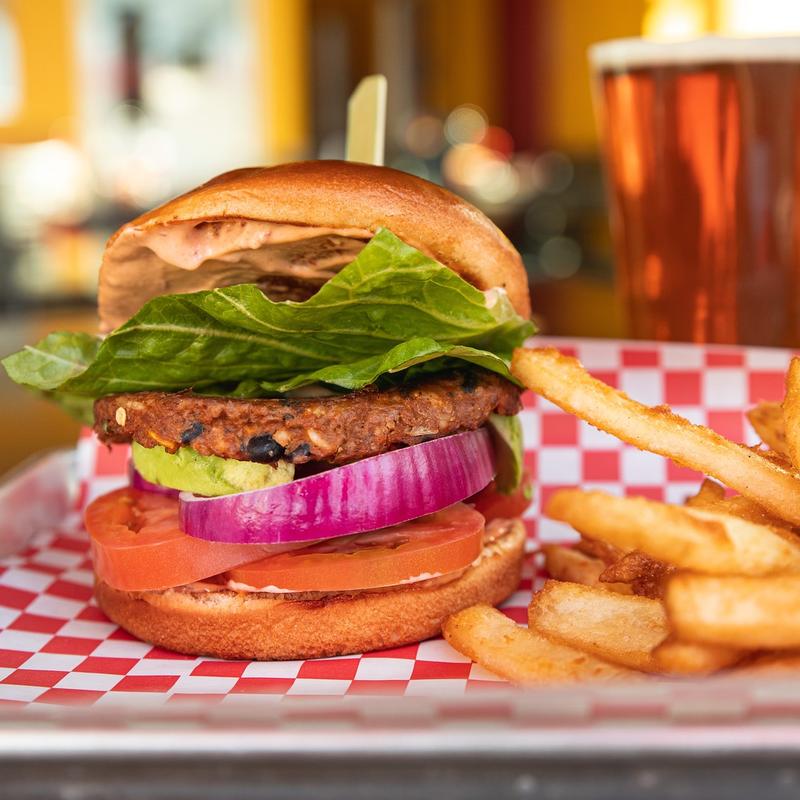 Blackened chicken breast with melted cheddar cheese, lettuce, tomatoes, and onion, with chipotle mayo on a ciabatta bread. Served with a side of fries